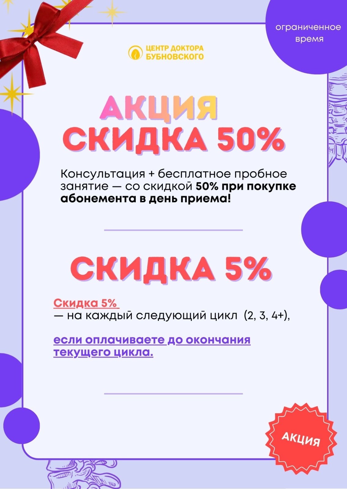 Консультация + бесплатное пробное занятие — со скидкой 50% при покупке абонемента в день приема!